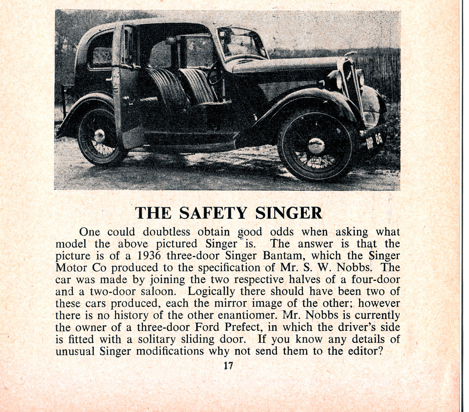 Anything to do with Singer Bantam cars produced between 1935 and 1939